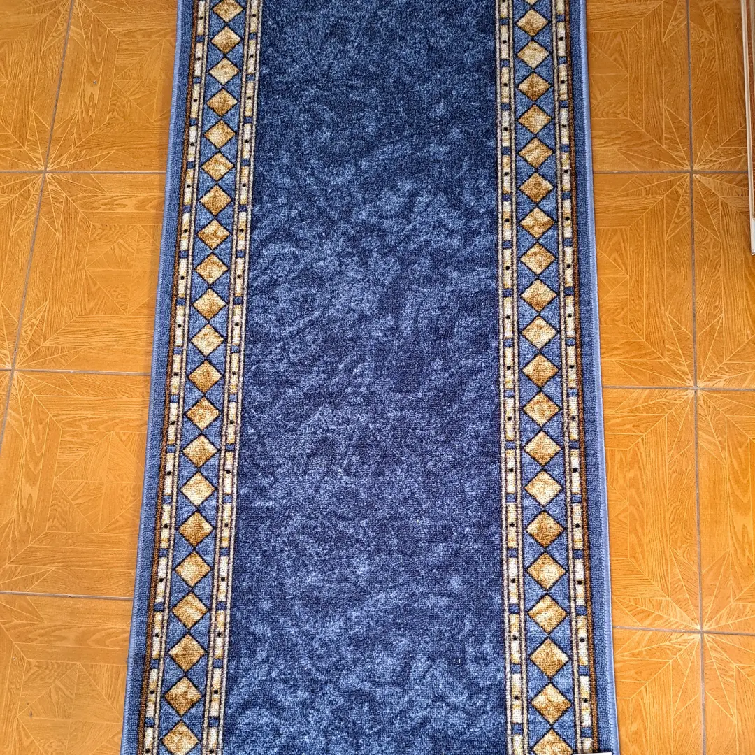 Alfombra Pasillo Madras Azul combina nylon 100% –fibra reconocida por su resistencia a la abrasión y recuperación elástica– con base antideslizante que aporta estabilidad en zonas de circulación constante. El ancho de 67 cm facilita tramos continuos y terminaciones prolijas. Su pelo compacto entrega pisada mullida y reduce la reverberación.