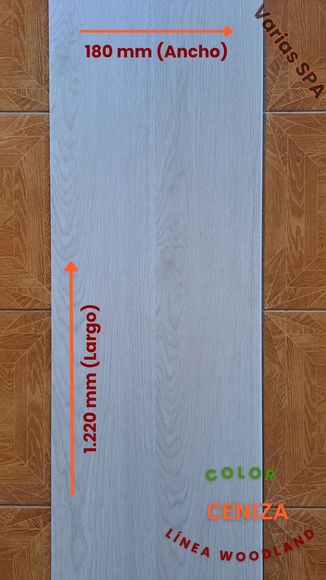 Piso Vinílico SPC Color Ceniza - 5mm - Línea WoodLand