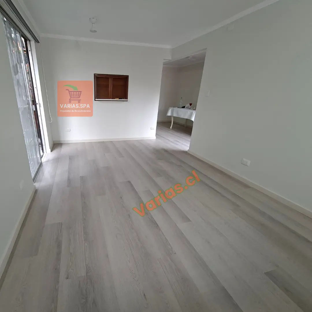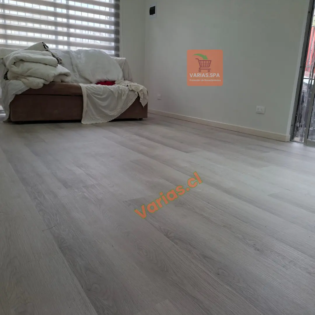 El Color Ceniza entrega una estética moderna tipo roble gris que combina con interiores nórdicos, industriales o minimalistas. Su núcleo SPC (Stone Plastic Composite) ofrece estabilidad dimensional superior, clave frente a los contrastes térmicos y la radiación del sol presentes en diversas zonas de Chile.