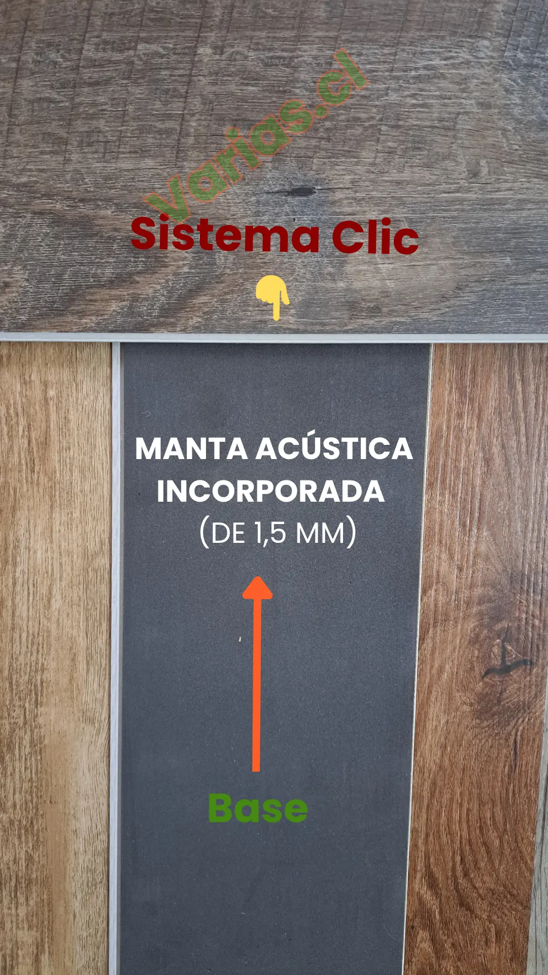 En Chile, donde el clima varía entre zonas húmedas, lluviosas y soleadas, este piso SPC se adapta a cualquier condición. Su impermeabilidad total evita daños por agua, derrames o humedad. Además, resiste rayaduras, químicos y desgaste en zonas de alto tránsito. Con la base acústica incorporada, se eliminan ruidos molestos, ideal para departamentos y oficinas.
